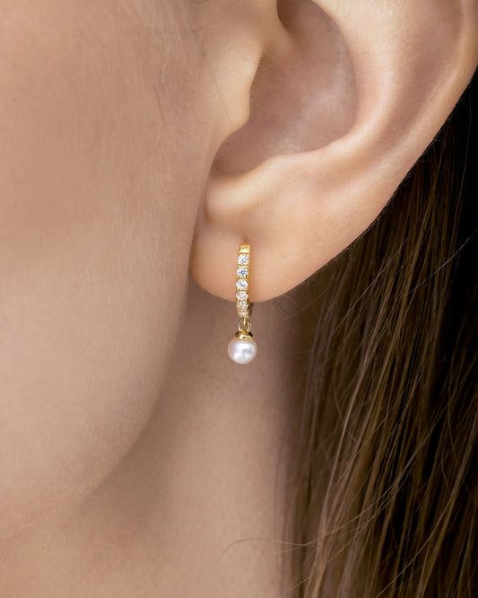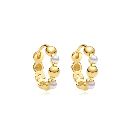 925 Silver Sterling Elegant Pearl Hoop Earrings (Pair)