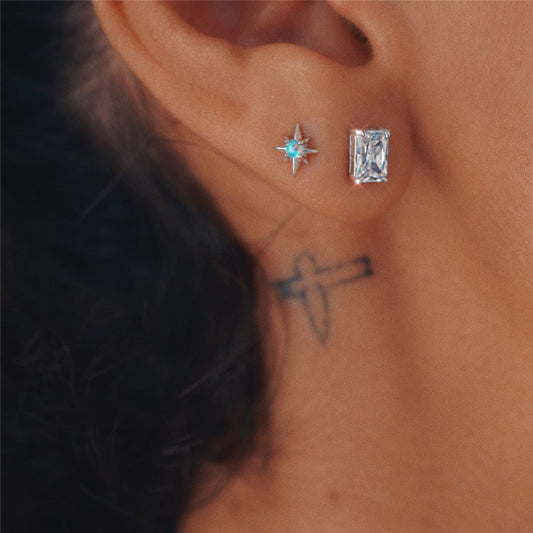 925 Silver Sterling Small Star Colorful Opal Stud Earrings (Pair)