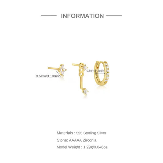 925 Silver Sterling Earring Set of (three) Pcs