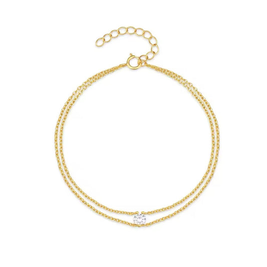 925 Silver Sterling Single Zircon Double Layer Bracelet