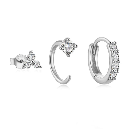 925 Silver Sterling Set of 3pcs Trinity Earrings