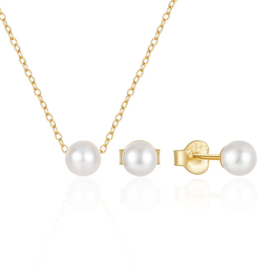 925 Sterling Silver 3PCS Pearls/Zircon Stud Earring With Pendant Necklace Set