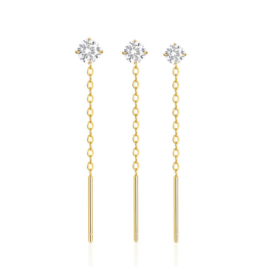2/3/4mm Zircon Long Chain Tassel Earrings Set for Women 925 Sterling Silver 3PCS piercing Jewelry